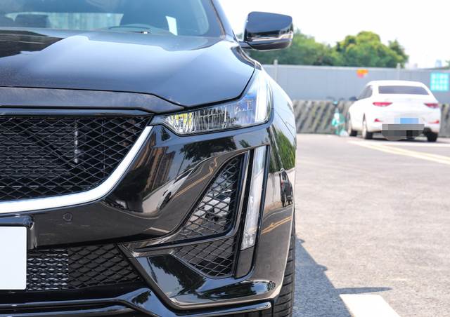接下来就是小车匠最爱的外观设计了,2020款凯迪拉克CT5的外观看着比奔驰C更帅,而且外观的气场十足还非常霸气。新车采用的是全黑车身的设计,而且前脸部分的造型十分霸气夸张。汽车采用的是造型十分个性的钻石切割大灯,并且均采用的是LED光源。进气格栅以及下方的进气口均搭配有黑色的蜂窝网格装饰,使得整个车头看上去战斗力十足,而且还有一种轿跑汽车的既视感。