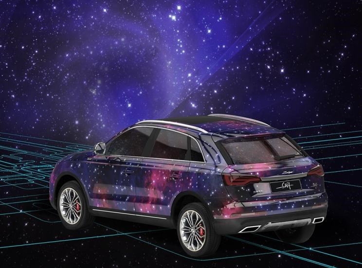 根据之前公布的外观图片,该限量版车型的车身同样采用了星空样式的涂装,整体效果流光溢彩。同时,这款车还配备了新样式的轮圈以及红色的刹车卡钳。