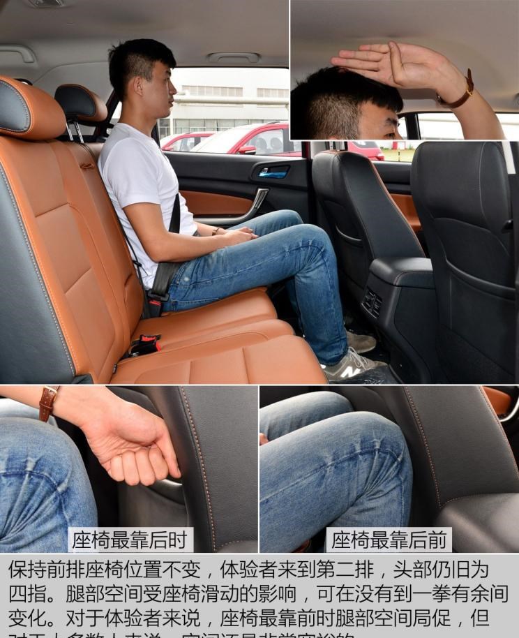 新车拥有5座和7座版本,其中7座版车型采用2+3+2的座椅布局,根据我们的同事实际体验,在座椅调整至正常驾驶姿态后,前排头部约有四指的空间,第二排拥有头部四指和腿部一拳左右的空间。