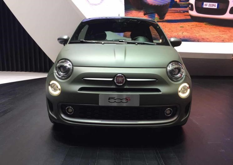 车展发布的菲亚特新款500S车型采用了磨砂暗绿色涂装,新车使用了全新的前保险杠,相较普通版菲亚特500车型更具运动性,前保险杠下部进气口采用了点阵式设计,前保险杠两侧增加了空气动力学套件也为前脸带来了全新的视觉感受。