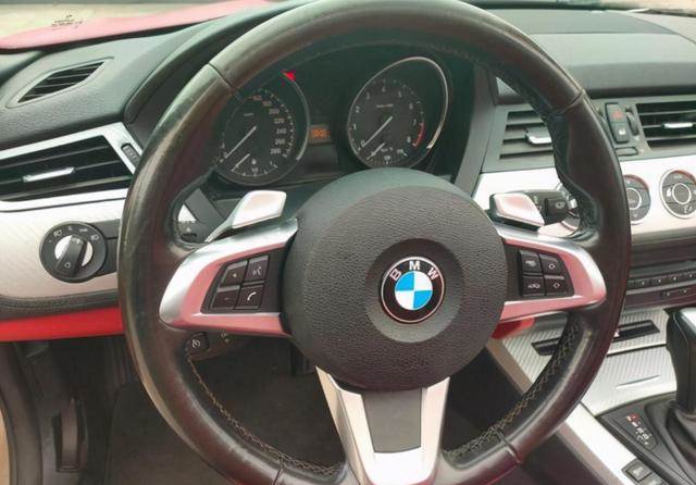 这辆老宝马Z4的多功能方向盘还算有质感,真皮包裹,舒适度还行,至少在跑车中还算不错的,驾驶乐趣很好,敞篷跑车很拉风,但是也有一些缺点的,毕竟车无完车,很多年轻人是不在意这些的,他们喜欢的就是宝马Z4的时尚,作为代步车来说足够了,用途比较单一。