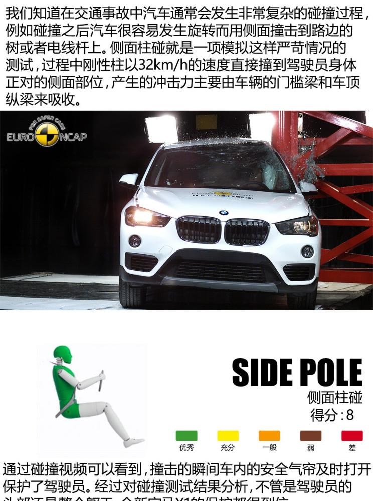 UKL横置前驱平台下的全新宝马X1其发动机舱长度更短,正面碰撞时的缓冲区域更小,但E-NCAP碰撞测试中心给出的五星评价结果可以证明它的主被动安全性都很不错。唯一美中不足的是它在行人保护方面,虽然新的车灯降低了对行人骨盆的伤害,但整体上成绩还是不够优秀。如今行人保护是所有汽车厂商面临的共同问题,因为通常是“鱼与熊掌不可兼得”,在保证车身结构强度的同时很难再降低车头部分对行人的伤害。在越来越注重行人安全的今天,也寄希望于厂商通过改变结构形状或改善材料等方式对行人进行更多的考虑。
