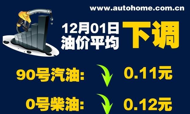 12月1日,国家发展改革委发出通知,决定将汽、柴油价格每吨分别下调145元和140元,测算到零售价格90号汽油和0号柴油每升分别下调0.11元和0.12元,调价执行时间为12月1日24时。国内油价也迎来了三连跌。