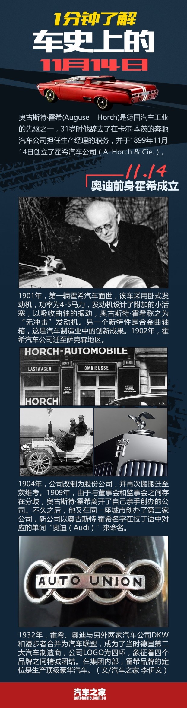车史上的11月14日 奥迪前身霍希成立日