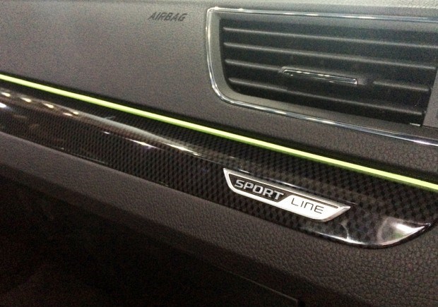 内饰方面,新车内部整体采用了黑色的配色,并点缀有碳纤维饰板以及绿色饰条。中控台面板出现的“SPORTLINE”标识也代表了其特殊的身份。此外,该车装配了全新的运动型座椅。