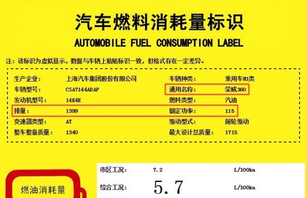 从最新发布的汽车燃料消耗标识上看,新车的通用名称为荣威360,其将搭载1.4T和1.5L发动机,其中1.4T发动机最大功率156马力,1.5L发动机最大功率109马力。传动系统方面,与发动机匹配的将是手动或自动变速箱。