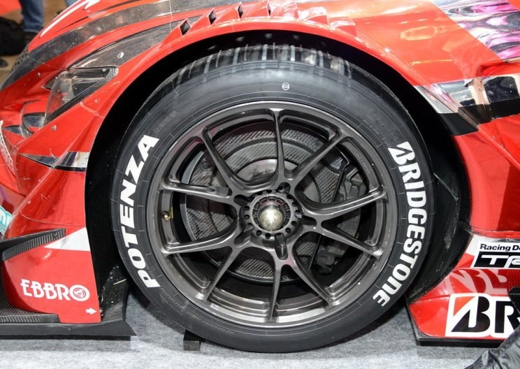 这辆赛车配置了整套碳纤维空气动力学套件——这种经过精密设计和测试、对空气动力学特性有真正提升的配置已经不能称为“外观套件”了。车辆配置了竞技级别的AP RACING制动系统,制动盘还包裹了碳纤维的隔热罩,说明这是一套工作温度很高的制动系统。中央锁死结构的18寸轮圈搭配普利司通300mm宽度光头胎,这在赛道上绝对是一辆凶狠的行走机器。