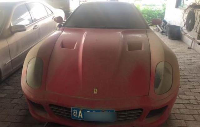 这是一辆被法院封存的法拉利599 GTB,因为没有任何的登记手续跟购买手续,甚至连车牌都是假的,所以这辆车就算再好,也是不能直接转手过户,只能通过按照零件拆分的方式拍卖掉。所以对于这样注定要被拆开的车子来说,它的行驶里程跟状态都不重要,重要的就是车上那些零件。其实从现场的图片中能看出,这辆法拉利还是挺不错的,红色的车身上虽然落满了灰尘,但是无损它的颜值。