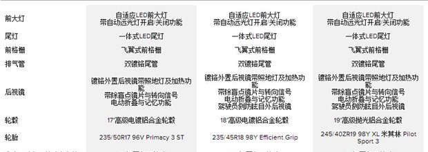 内部配置方面,新车标配真皮座椅、LED氛围灯、双区自动空调、前排座椅电动调节、前排座椅加热和无钥匙进入及一键式启动;除最低配车型之外新车标配14扬声器音响、后排音响控制系统以及声控导航;而顶配车型还配备有前排座椅通风、后排左右加热、按摩座椅、全景天窗和方向盘加热功能等。