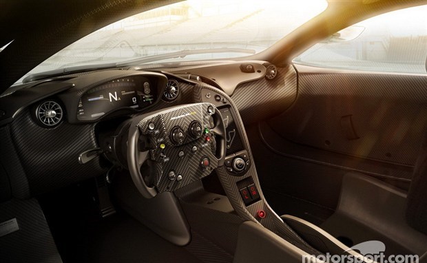 重量仅有90kg的MonoCage碳纤维座舱直接从量产版P1上移植了过来,车内布局相比量产版的P1来说更加专注于驾驶的部分,并进一步进行了轻量化改进。方向盘设计借鉴了迈凯伦2008年F1冠军车MP4-23的设计,双手不用离开方向盘就能对车辆进行许多驾驶细节方面的设定,迈凯伦同时还优化了佩戴赛车手套时对方向盘的操作手感。DTM风格的赛车座椅配合六点式安全带为车手提供最大化的保护,并支持HANS头颈保护系统。