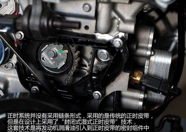 1.2THP发动机采用了封闭式湿式正时皮带设计,这样设计可以降低发动机噪音,而且终生免维护,免更换,有助于降低消费者的后期使用成本。