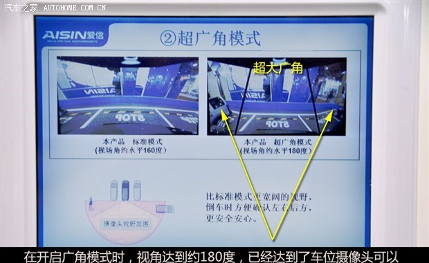 2014年用车展上,爱信推出了一款全新的“多视角倒车辅助视像系统”。倒车影像这个功能已经不足为鲜,而这款“多视频角倒车辅助视像系统”可以说是传统倒车影像的升级版。