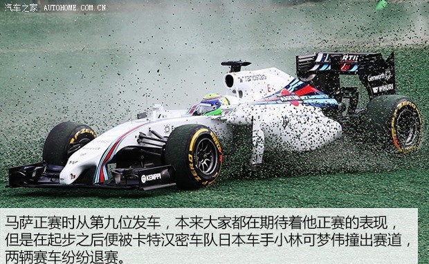 赛后本站干事进行调查后得出结论,小林可梦伟赛车的刹车系统出现故障导致当时只有前刹车在工作,所以才发生此次事故,所以不进行处罚。马萨从法拉利出来之后转投威廉姆斯做1号车手,他在季前巴林试车时的车手综合成绩排名第一,在赛前的总总迹象表明他会有所作为。