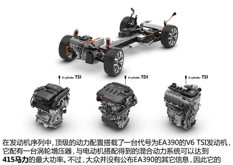 在2013年大众推出了一款基于MQB平台的城市SUV,叫做CrossBlue Coupe,它采用了一套全新的混动四驱系统,由内燃机带动前桥,电动机驱动后桥。在它的发动机序列中我们看到了一台代号为EA390的V6 TSI发动机,有别于其他V6发动机,它紧凑的外形让人有一种似曾相识的感觉。