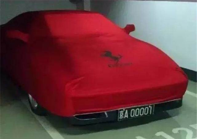 除了这辆兰博基尼以外,在一个角落当中还有一辆被红色车衣盖住的一辆车。通过整体的外形大家就可以推测一下,这似乎是一辆非常经典的法拉利。而且大家也是隐隐可以推测出他的车牌,似乎就是曾经那个知名的京a00001。