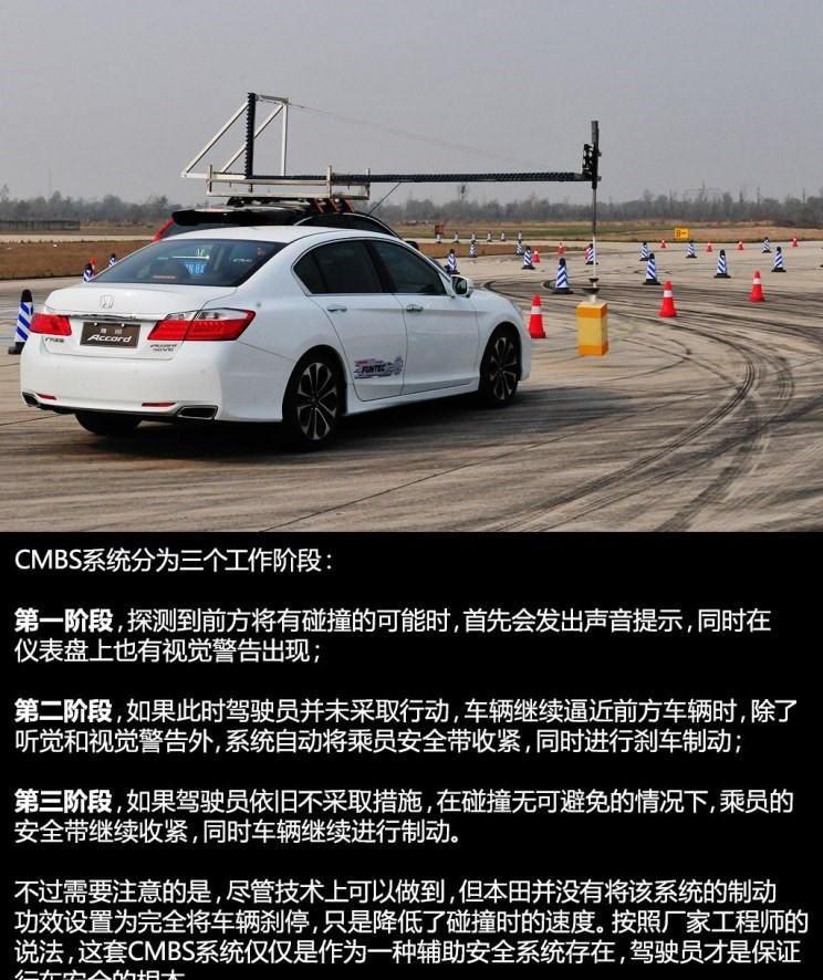 本田在主被动安全技术方面向来都有自己的一套,比如令第九代雅阁、思域获得北美IIHS最高碰撞安全评价的ACE车身、以及行人保护结构等等,而此次我们着重体验的是其Lane Watch并线辅助系统以及CMBS防碰撞制动系统,这两个系统均已配备在国产第九代雅阁上面,其中CMBS系统为V6车型的专属配备。