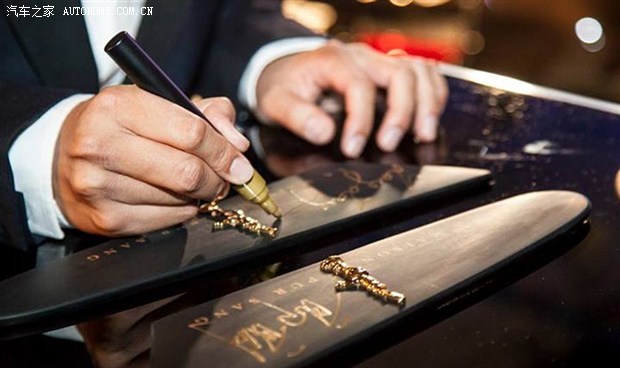 内饰方面,新车同样采用黑白配色,方向盘以及油箱盖上面的EB金色徽章标识灵感则来自其钢琴下方的金色脚踏板。同时车内还有郎朗的签名以及显示车名“La Maison Pur Sang”的 标识。目前还不清楚该车是否计划要出售,还是已经被一些买家收入囊中。