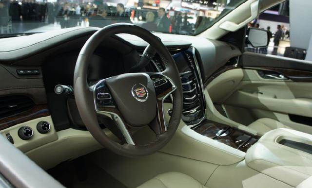凯雷德换挡杆选用了现代美式“怀挡”方式,令人意想不到的是“怀档”居然集成化了手自一体作用。手动式加减法挡按键就在换档杆上边,而换档杆的侧边也有拖拽方式。中控台既古典风格又当代,换碟机占有了许多仪表台的室内空间,看起来一些简单。汽车方向盘直徑非常大,仪表灯十分好看,美系车特有的“怀档”居然集成化了手/自一体作用!