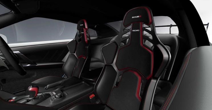 内饰部分,NISMO车型采用了大量碳纤维面板用来减重,同时配备了一个超薄碳纤维桶形座椅进一步降低车重。动力方面,新车也将会继续搭载3.8T双涡轮增压发动机与6速双离合变速箱以及四轮驱动系统。