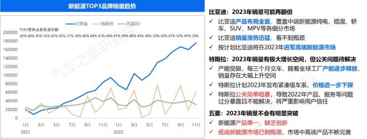三个明星品牌中,比亚迪、特斯拉2023年仍存在大幅增长机会。